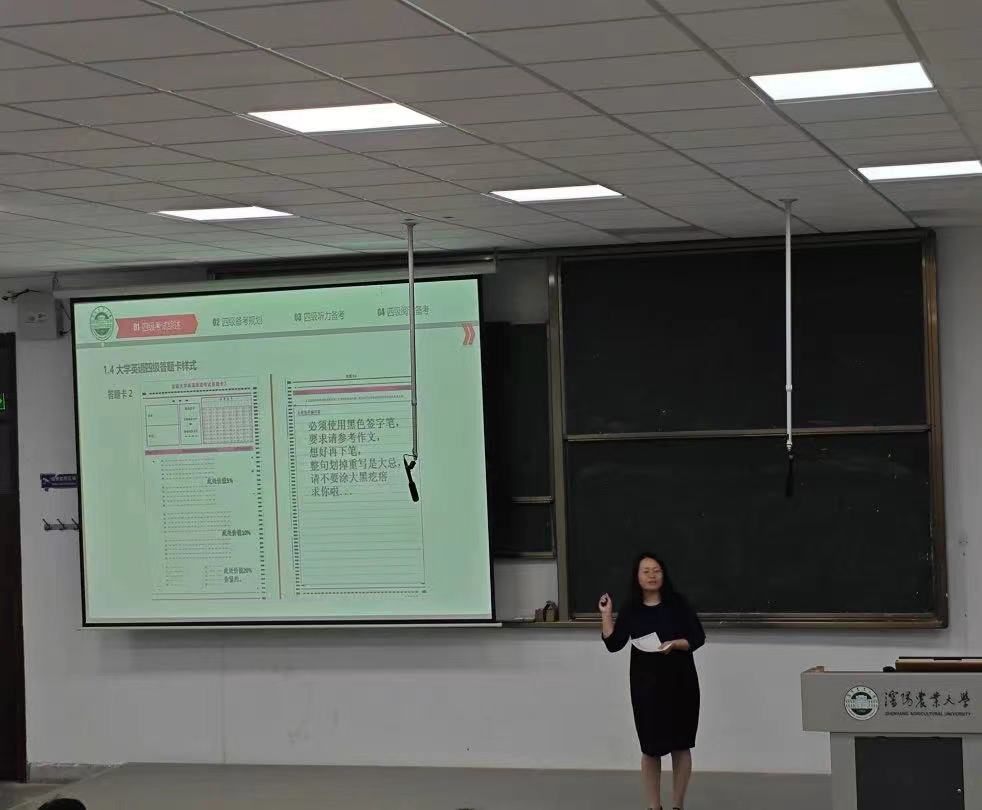 为帮助江南官方网站2023级同学备战全国大学英语四级考试,提高对外语学习的积极性,提升外语能力素养。近日,学院联合外语教学部于一教南区202教室开展了大学英语四级考试备考讲座活动。本次讲座由大学外语教研部朱翠华老师和宋静芳老师主讲,江南官方网站2023级学生现场参与了讲座活动。