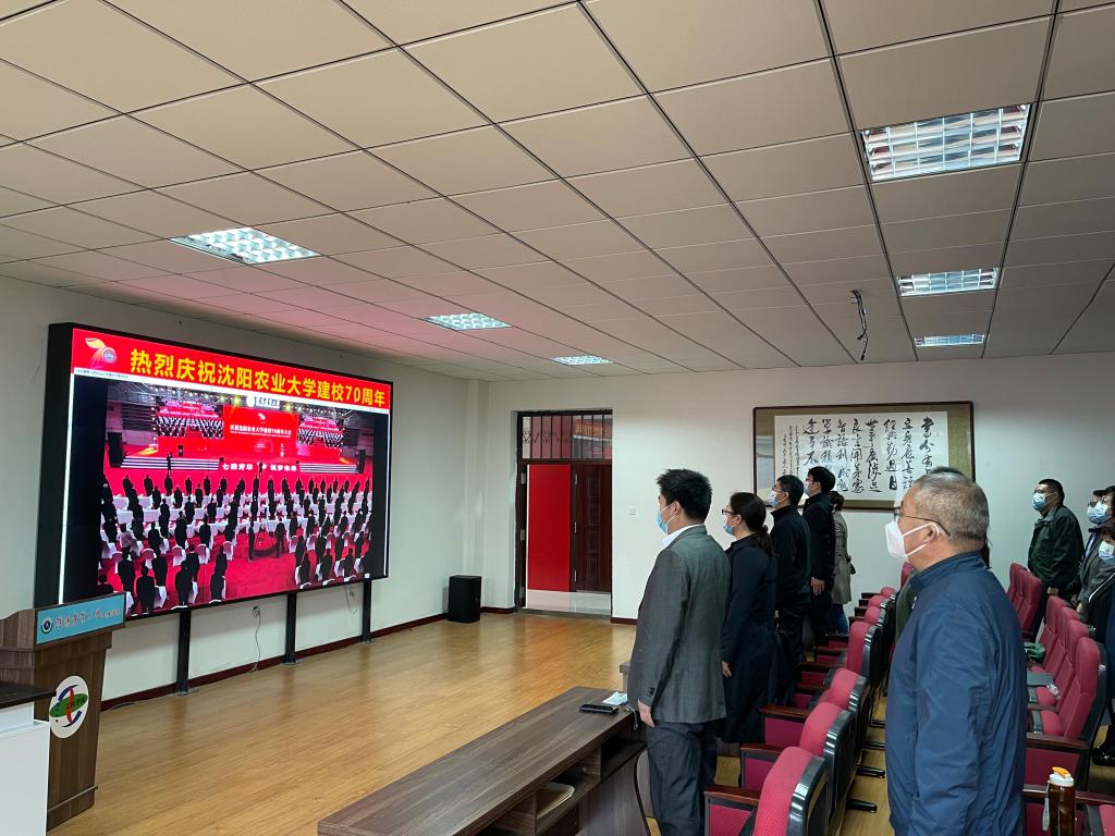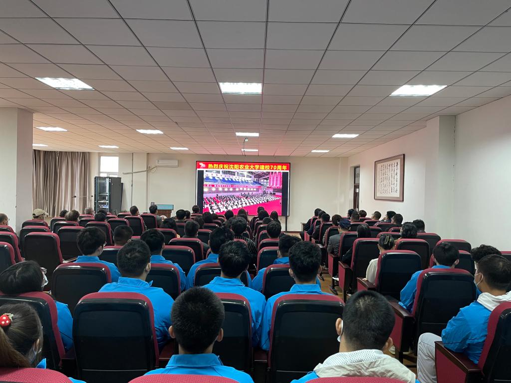 耕耘七秩续华章,粮安天下铸辉煌,10月9日,沈阳农业大学隆重举行建校七十周年庆典。江南官方网站党委组织全体师生观看校庆直播,师生们怀着无比激动的心情,见证了沈农人昨天的拼搏,分享今天的成绩,憧憬沈农美好的明天。观看过程中,师生们心情激动,直播现场不时响起雷鸣般的掌声。师生们备受鼓舞,纷纷表达了自己对母校诚挚的祝福。
