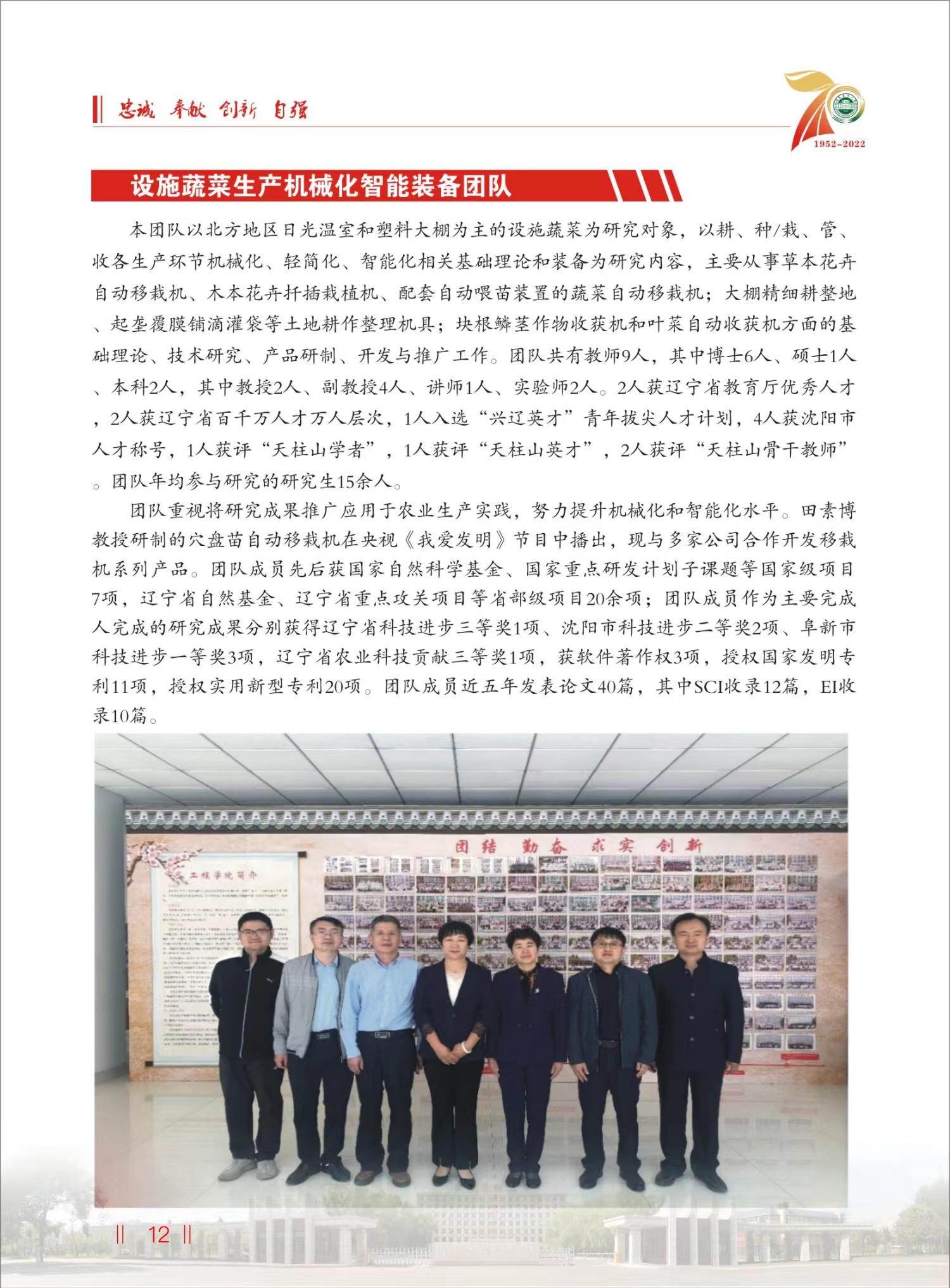 设施蔬菜生产机械化智能装备团队