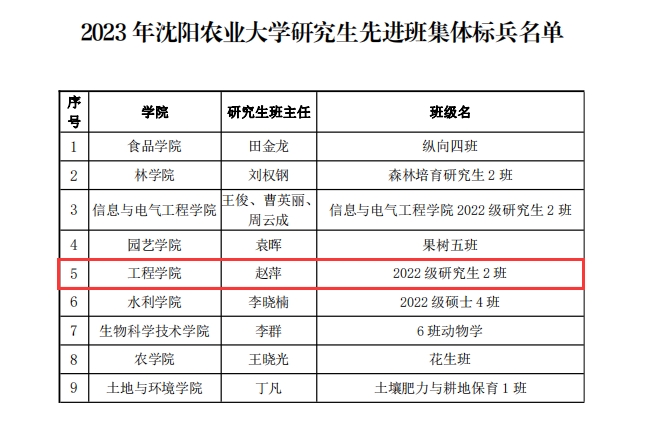 近日,研究生院(党委研究生工作部)公布2023年沈阳农业大学先进班集体及标兵名单。根据《关于做好2022-2023学年度研究生评优表彰工作通知》,经班级申请,学院初评、推荐,学校评审,我院2022级研究生2班荣获2023年沈阳农业大学研究生先进班集体标兵。(江南官方网站 董瀚辰)