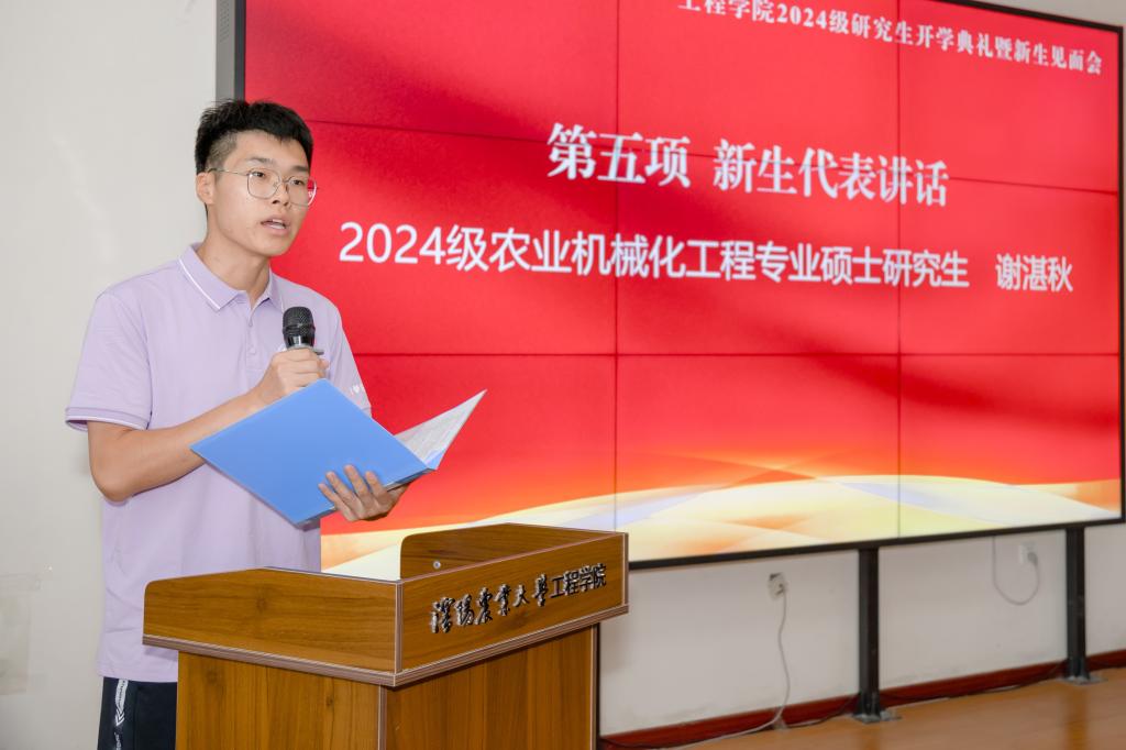 2024级农业机械化工程专业硕士研究生谢湛秋代表新生发言