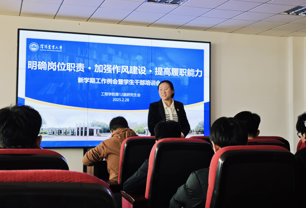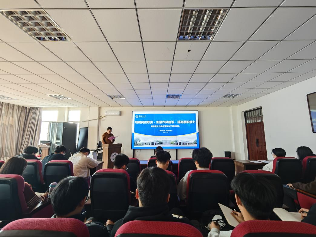 为明确学生干部岗位职责,加强作风建设,全面提升履职能力,2月28日下午,江南官方网站第12届研究生会新学期工作例会暨学生干部培训会在江南官方网站501会议室召开。学院党委书记王楠出席会议并讲话。会议由研究生辅导员董瀚辰主持。