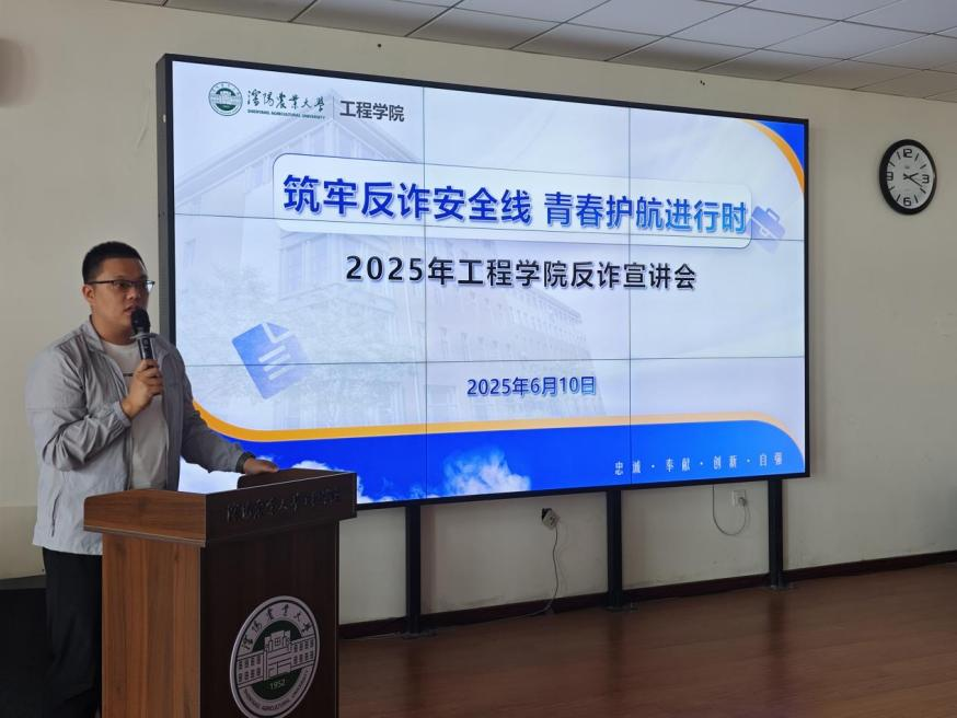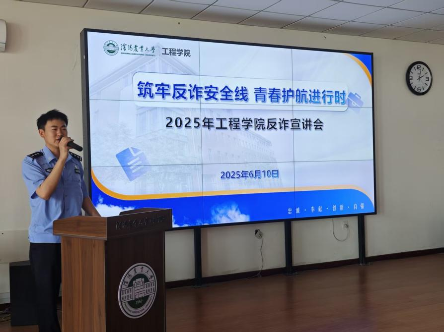 为切实增强学生反诈意识,提高学生防范电信网络诈骗的能力,6月10日,学院于6月10日在501会议室召开“筑牢反诈安全线 青春护航进行时”2025年反诈宣传会,邀请沈阳市公安局沈河分局东陵派出所李天琦警官、邹凡焜警官为学生们专题讲解反诈知识。会议由辅导员董瀚辰主持,辅导员杜爽及80余名学生代表参加会议。